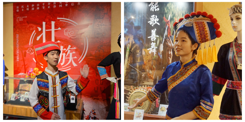 讲解员将红色文化、桂南民族特色风情融入其中,深入讲解桂南地区非遗技艺、非遗文化,以及桂南地区城乡发展风貌等,充分展现出新时代壮美桂南的新气象、新风采。