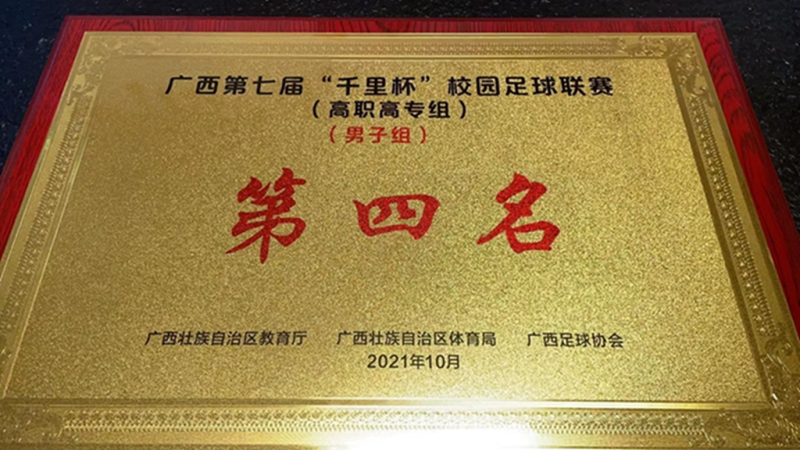 10月26日-31日,广西第七届“千里杯”校园足球联赛(高职高专组)在南宁武鸣举行。太阳集团2138学生男子足球队在领队梁冬松副书记的带领下,体育教学部石健东、覃珮峰老师指导下,不畏强敌,奋勇拼搏,荣获第四名。