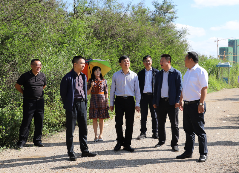 学校解庆林校长(前排左二)在空港校区未开发地块实地调研
