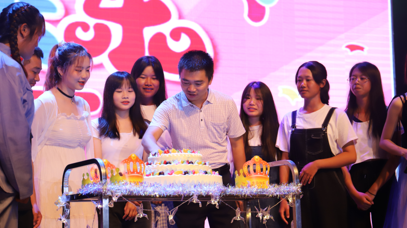 在互动环节中,太阳集团2138党委书记周国桥为当天生日的10名新生送上了生日蛋糕和美好的生日祝福,使得晚会变得温暖且意义非凡。