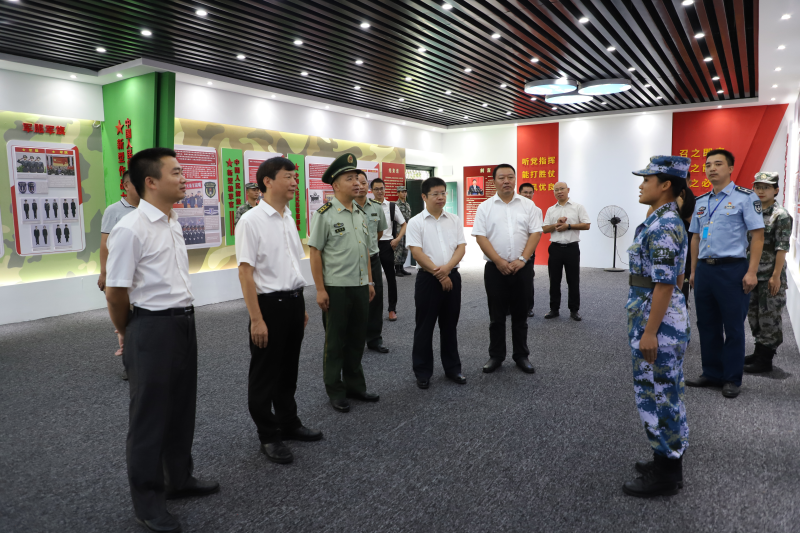 解庆林校长一行在讲解员的带领下参观了国防教育基地,并听取了相关工作汇报,了解了中国人民解放军各军兵种发展历程、我国最新的武器装备,聆听了人民解放军的光辉事迹。出席活动的领导及嘉宾还实地参观了模拟射击馆,并进行了模拟射击体验。