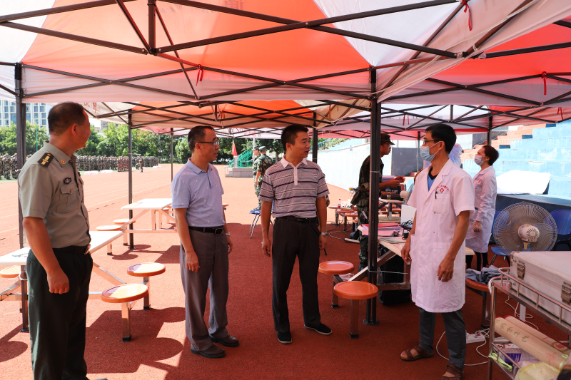 校领导一行分别到各营训练场地,走访军训服务点和医疗服务点,详细了解承训教官和参训学生的组织训练情况,肯定了全体承训教官的奉献精神与专业素养,强调要科学施训、安全施训,确保军训工作顺利进行,并希望2021级全体新生在军训中提升自己的意志品质,努力完成军训任务,在接下来的军训和学习生活中能够延续军训过程中培养的国防观念、纪律观念和团队意识,为今后的学习和生活奠定坚实基础。校领导一行还与军训病号进行亲切交谈,了解身体状况和存在的困难等,要求跟训辅导员密切关注受训学生,关心关爱病号。