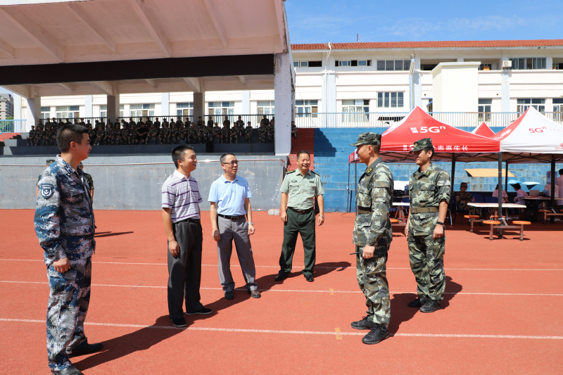 9月18日上午,太阳集团2138党委书记周国桥、党委副书记梁冬松,在分校办公室、保卫工作部、国防教育教研室相关负责人等陪同下到军训现场看望慰问军训教官与2021级新生,检查军训开展情况,并对进一步做好军训各项工作提出要求。