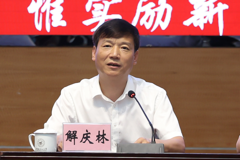 学校校长解庆林在主持会议时向受到表彰的先进个人表示热烈的祝贺,向所有为了学校发展、默默奉献在教学、科研、管理、服务一线的教职工表示衷心的感谢!他号召全校广大教职工以“四有”好老师为目标,立足本职,辛勤工作,锐意进取,努力培养更多德智体美劳全面发展的社会主义建设者和接班人,为建设社会主义现代化强国、实现中华民族伟大复兴中国梦贡献新的力量。