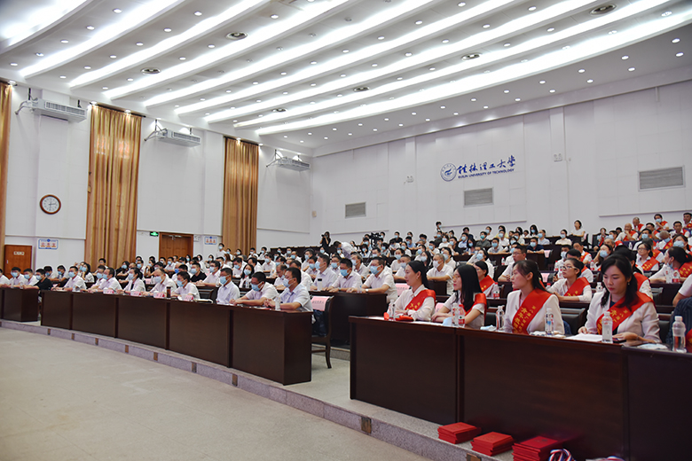 会上同时还进行了新入职教师入职宣誓仪式。庄严的誓言铿锵有力,回响在会场,代表着全体教师继续努力奋斗的决心,同时也激励广大教师弘扬“桂工精神”,坚定信念,坚守责任,立足岗位,建功立业,为把学校早日建成特色鲜明、国内知名的高水平理工大学贡献智慧和力量。