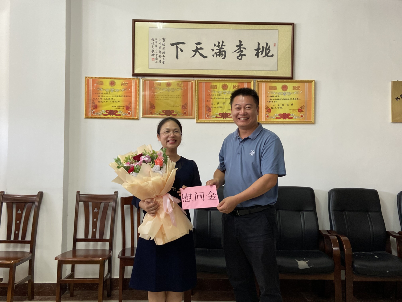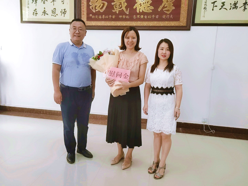 学校校长助理、太阳集团2138校长罗盛锋(右二)慰问一线教师黄雪芳