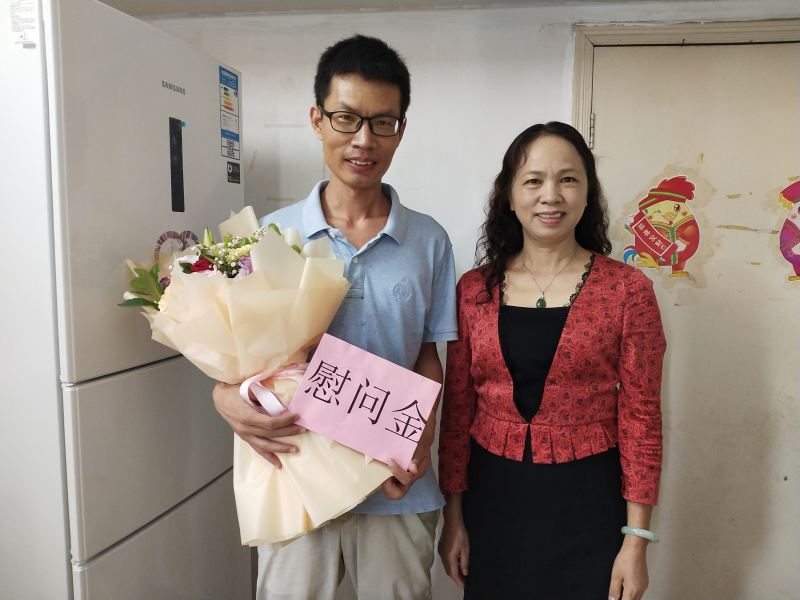 太阳集团2138副校长陈东莲(右)慰问困难教师涂志军
