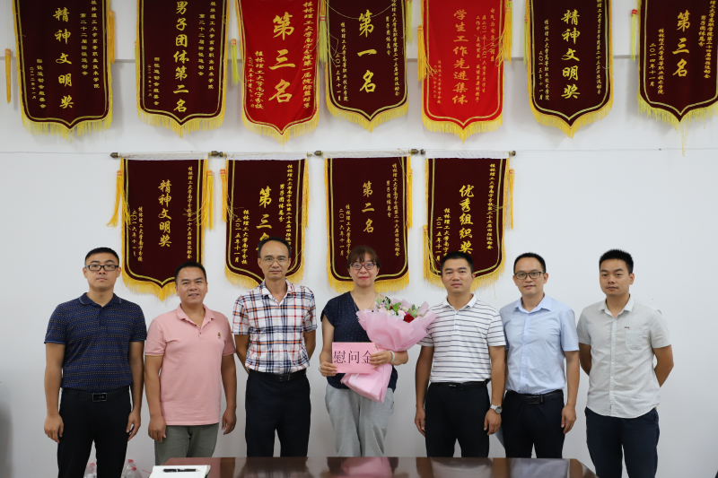 太阳集团2138纪委书记何斌(左三)慰问一线教师