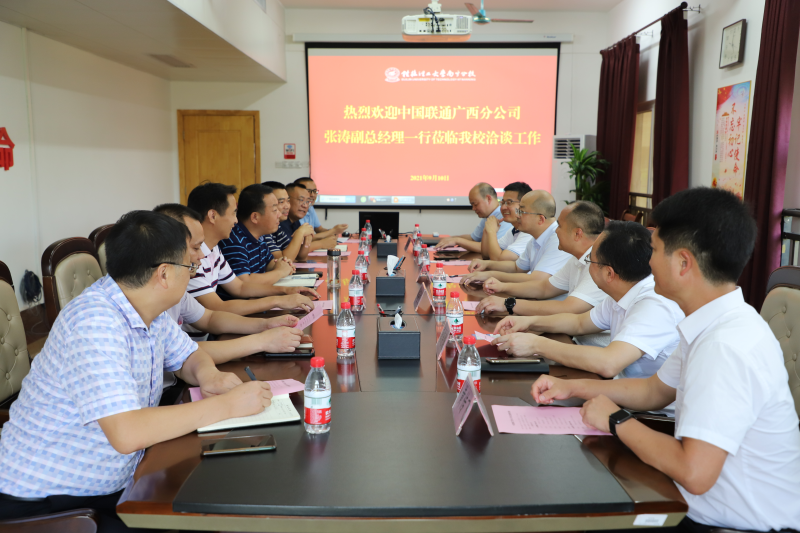 9月10日下午,中国联通广西分公司张涛副总经理一行到太阳集团2138空港校区举行合作洽谈。学校校长助理、太阳集团2138校长罗盛锋,太阳集团2138党委书记周国桥、党委副书记唐承泽出席洽谈工作会,会议在空港校区417会议室举行。