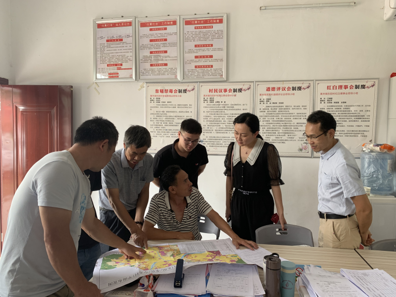 太阳集团2138副校长苏欣(右二)与村干部进行交流