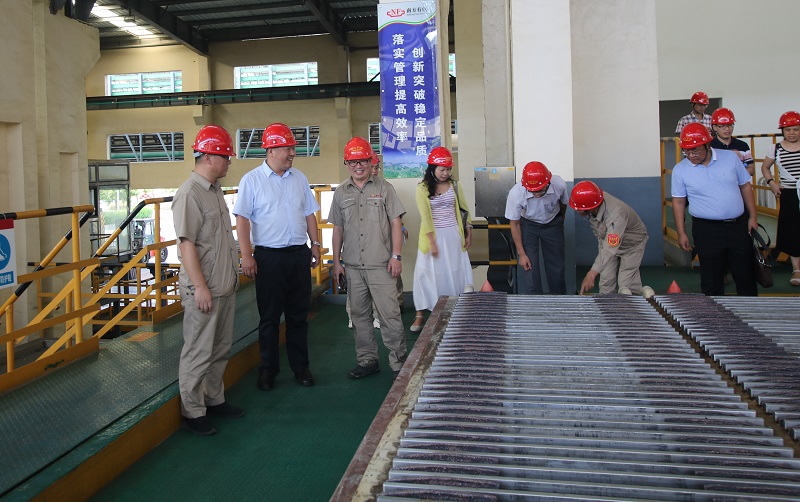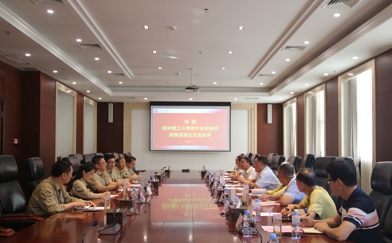 南方有色集团副总经理马宝军及南方有色集团开发部、人力资源部负责人、南国铜业副总工程师热情接待了罗盛锋校长一行。调研组一行首先参观了广西南国铜业生产调度指挥中心,南方有色集团人力资源部副部长魏涛详细介绍了南国铜业一期30万吨生产线项目及相关先进工艺,并实地参观了生产车间,随后双方召开座谈会。