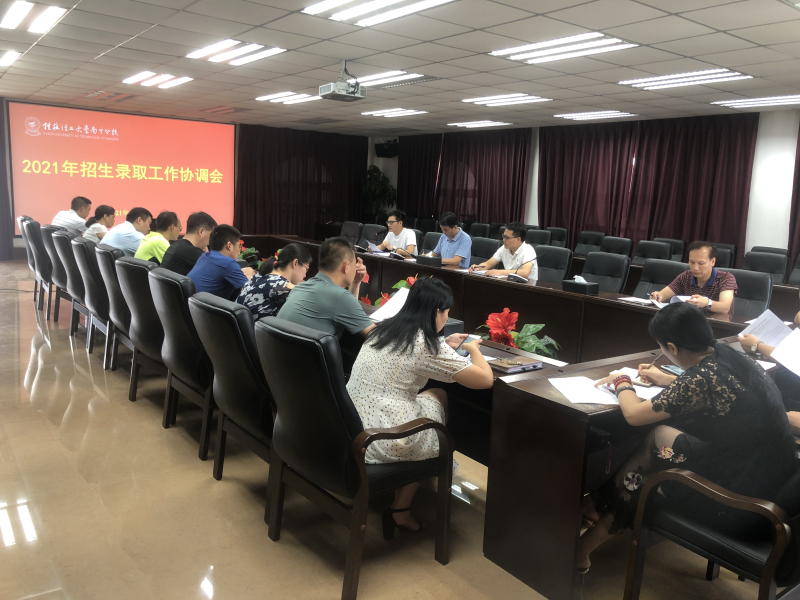 会上,招生与就业办公室负责人就2021年招生录取工作安排进行了详细说明。与会人员就招生录取工作涉及的后勤保障、宣传、纪检监察工作等进行了沟通协调。