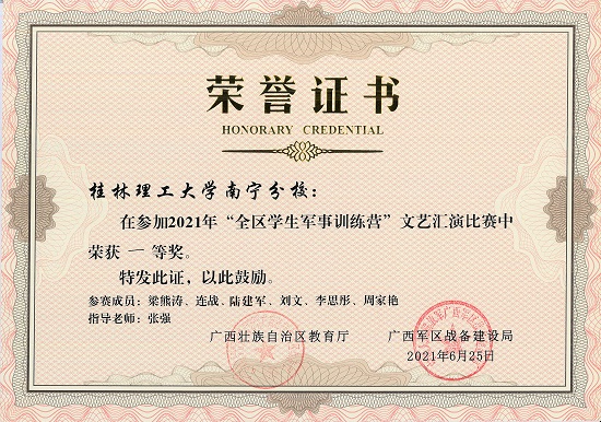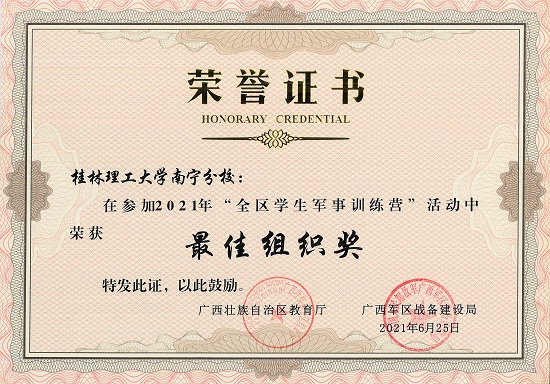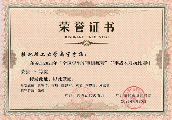 日前,全区2021年学生军事训练营结营。太阳集团2138学子在此次学生军事训练营的全部6项比武竞赛中,获得一等奖5项、二等奖1项。荣获高校组团体总分第二名并荣膺“最佳组织奖”。