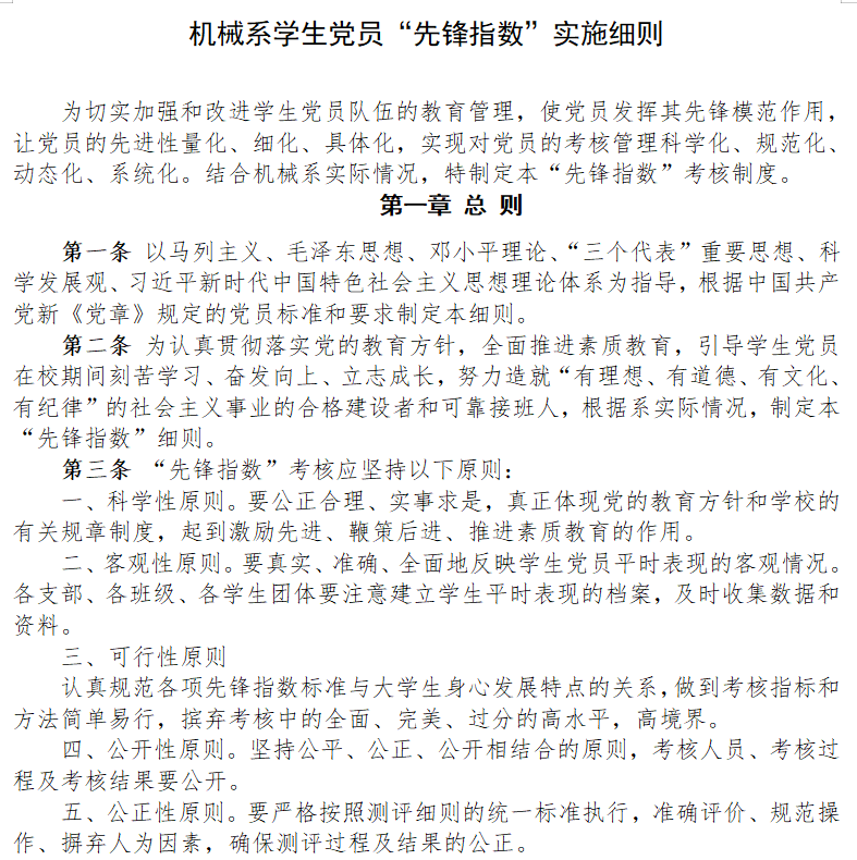 机械与控制工程系学生党员“先锋指数”实施细则