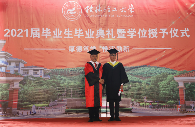 学校解庆林校长在毕业典礼上作了讲话。他向即将启程远航的毕业生提出三点希望:一是希望同学们厚植爱国爱民的“大情怀”。家国情怀是中华民族最为宝贵的精神财富。对每一位中国人来说,爱党爱国爱人民都应当是植根于灵魂的基因,是心之所系、情之所归。作为新时代青年,同学们要常怀护党之心、砥砺爱国之志、力践报国之行、深含爱民之情。二是希望同学们修炼立德立身的“大境界”。希望同学们努力践行社会主义核心价值观,坚持修身立德,打牢道德根基,善于从中华民族传统美德中吸收道德营养,从英雄人物和时代楷模身上感受道德风范,从百年党史中汲取前进力量,努力锻造修德修身的“大境界”,做一个德才兼备的时代新人。三是希望同学们练就做人做事的“大智慧”。希望同学们心里有大局、有榜样,对自己高标准、严要求,在为人处世中时时刻刻筑牢思想防线,认认真真守住做人底线,踏踏实实做好本职工作,成为工作上的能人,生活中的智者。四是希望同学们展现立行立业的“大作为”。希望同学们牢记“艰苦创业、敬业奉献、团结协作、开拓创新”的桂工精神,做只争朝夕的行动者、脚踏实地的实干家,以真功实绩贡献国家,以真才实学造福社会,以真心实意服务人民,在立行立业中大显身手、大有作为。