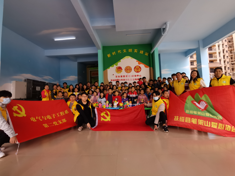 电气系党总支通过开展关爱特殊儿童留守儿童、慰问孤寡老人、到乡村教学点支教、家电义务维修等丰富多彩的校内外服务活动,传递橙色关爱,弘扬传统美德,特别是与扶绥县笔架山爱心协会建立长久合作关系,打造橙色关爱品牌活动,永葆党员先进性。