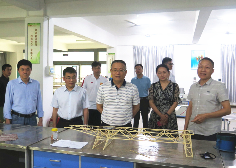学校党委常委、副校长王敦球(前排左三)在土木与测绘工程系实训室调研