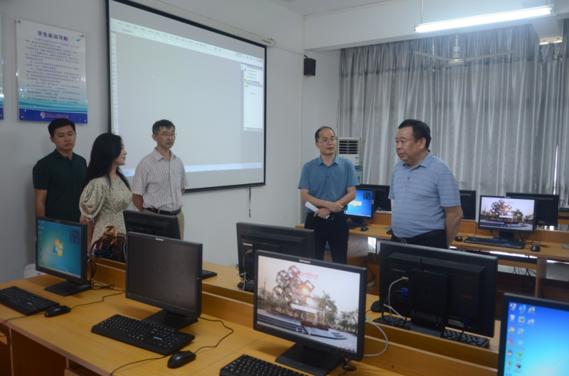学校党委常委、副校长梁福沛(右一)在计算机应用系调研