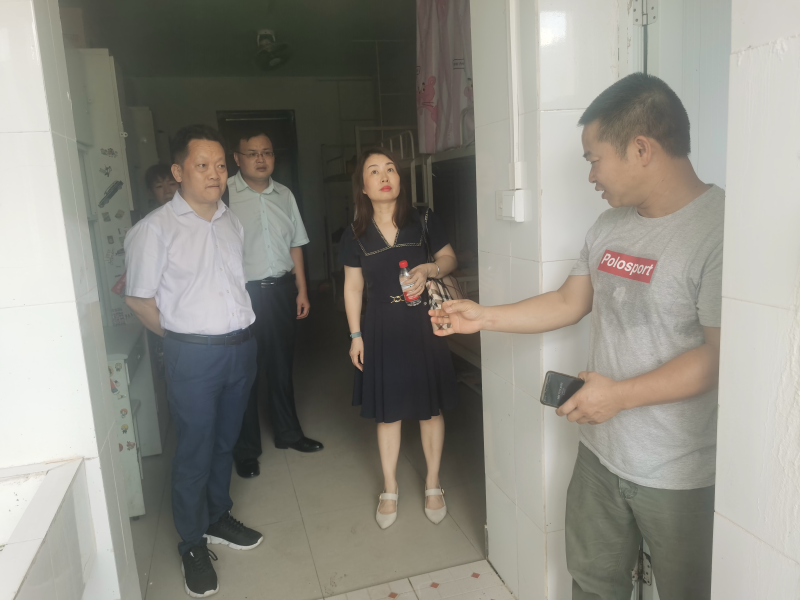 学校党委常委、总会计师曾繁荣(左一)在学生宿舍调研