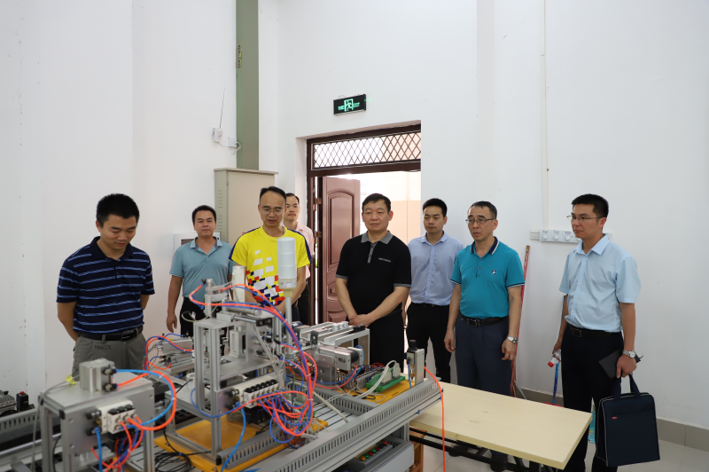 学校党委副书记齐俊斌(右四)在电气与电子工程系实训室调研