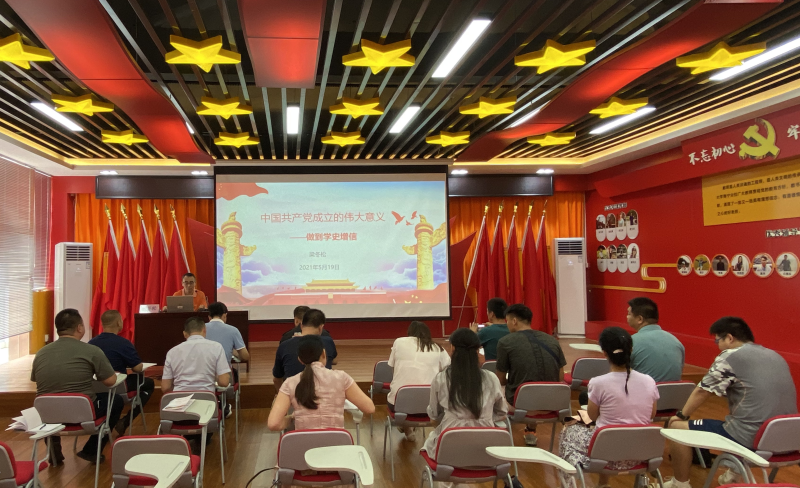 5月19日,太阳集团2138党委副书记梁冬松在空港校区党员教育活动中心为机关党总支第七党支部和体育教学部直属党支部全体党员讲授题为“中国共产党成立的伟大意义---做到学史增信”的党史学习教育专题党课。