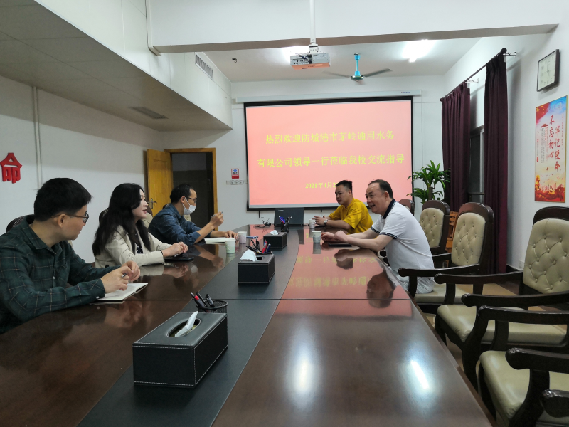 4月26日下午,防城港市茅岭通用水务有限公司总经理王胜勇一行到太阳集团2138进行参观考察。太阳集团2138副校长马华菊热情接待来访客人,并一同参观了冶金与资源工程系实验室。参观结束后,双方在行政楼417会议室洽谈合作。