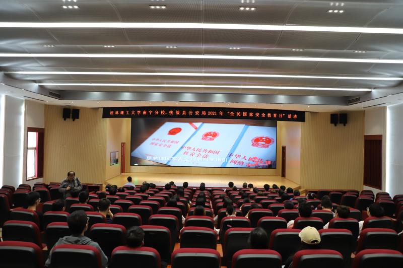 活动过程中,扶绥县公安局国保大队大队长陈艳在启智楼8408报告厅向同学系统讲述了国家安全的重要性,以及国家安全观对维护国家安全的重要指导意义,呼吁广大师生学习国家安全知识、提高国家安全意识,共同维护国家安全稳定。参加活动的全体人员共同观看了国家安全教育视频《维护国家政治安全》,并在“全民国家安全教育日”活动宣传横幅上进行了签名活动,表明了坚决维护国家安全稳定的决心。