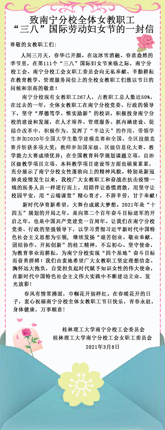 致太阳集团2138全体女教职工“三八”国际劳动妇女节的一封信