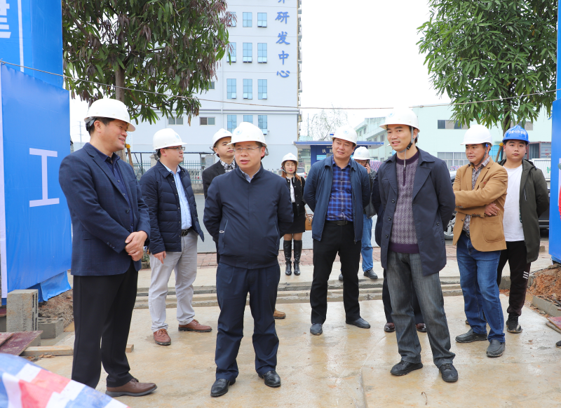 学校邓国彬副校长(前排左二)在南宁产业技术研究综合楼施工现场调研并指导开工建设
