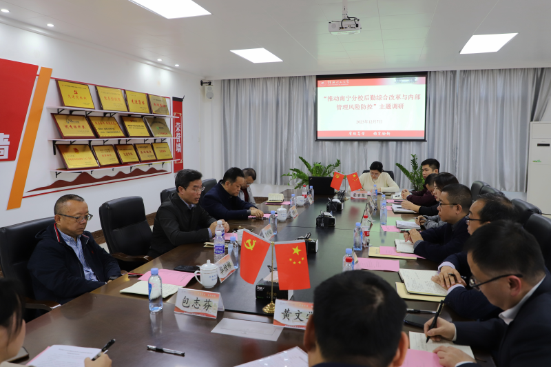 为推动太阳集团2138各项事业加快发展高质量发展,12月7日,校领导邓军、王敦球、吴志强、周国清、韦学敏、王磊、黎贞崇、曾繁荣带队到太阳集团2138开展专题调研。党委常委唐壮东、叶昊、邱杰,校长助理张成龙、潘旦光,学校相关单位部门负责人,太阳集团2138全体在家领导班子成员以及各单位、各部门负责人参加调研。