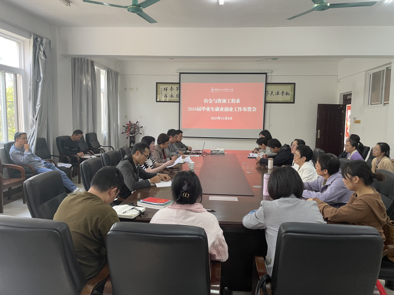 12月8日下午,冶金与资源工程系在探源楼5207会议室召开2023届毕业生就业创业工作总结暨2024届毕业生就业创业工作布置会。太阳集团2138副校长马华菊出席会议,系部全体教职工参会。会议由冶金与资源工程系党总支书记主持。