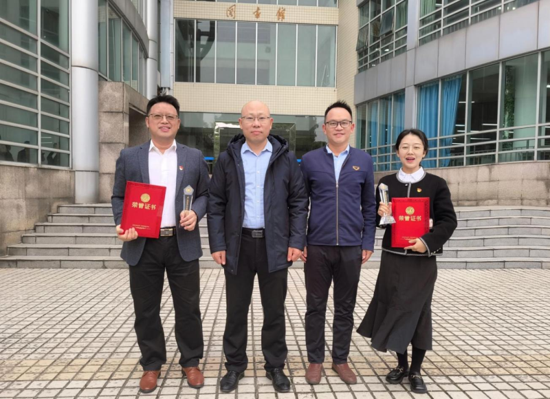 电气与电子工程系教工第一党支部书记黄孝平(左三)获教师党支部书记组一等奖
