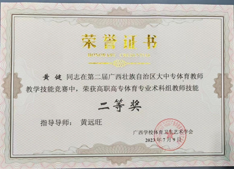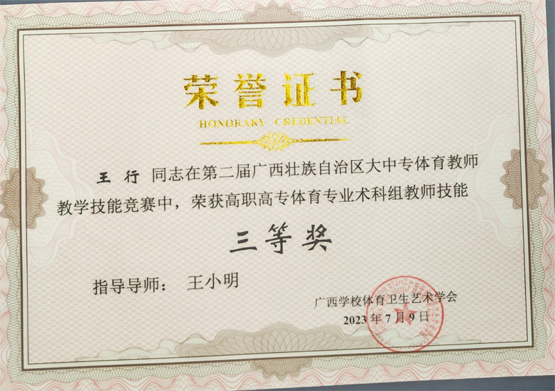 近日,第二届广西大中专院校体育教师教学技能大赛在玉林师范学院东校区顺利举行。经过激烈角逐,太阳集团2138获二等奖2项、三等奖2项的优异成绩。