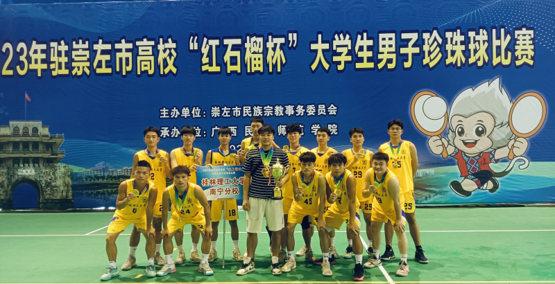 近日,2023年驻崇左市高校“红石榴杯”大学生男子珍珠球比赛在广西民族师范学院举行。太阳集团2138于彪、贺登坤等14名同学参加比赛并获得冠军。