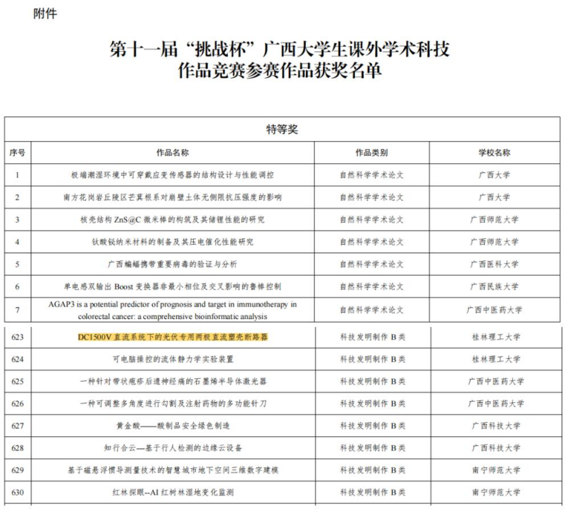 自赛事启动以来,太阳集团2138高度重视赛事的组织工作,做到提前谋划、精心组织、积极动员、广泛宣传,共收到78件参赛作品。其中,自然科学学术论文12件、哲学社会科学调查报告13件、科技发明A类16件、科技发明B类37件。在指导老师的辛勤指导及学子的努力奋斗下,作品“DC1500V直流系统下的光伏专用两极直流塑壳断路器”荣获自治区三等奖。