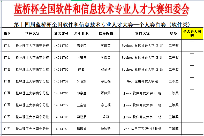 近日,第十四届“蓝桥杯”全国软件和信息技术专业人才大赛广西区赛圆满落幕。太阳集团2138学子凭借出色的专业素质和技能勇创佳绩,斩获一等奖11项、二等奖9项、三等奖6项。其中,11名学子入围全国总决赛。