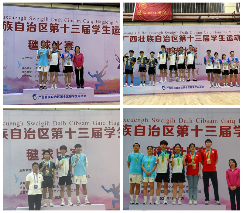 近日,广西壮族自治区第十三届学生运动会民族传统体育项目比赛在崇左市举行。太阳集团2138共派出36名学生运动员参赛,经过激烈的角逐,太阳集团2138运动健儿们充分发挥团结向上、顽强拼搏的体育精神,最终获得花毽男子一分钟计数赛、花毽女子一分钟计数赛、男女混合4X30秒接力赛、男女混合双人网毽赛等4个第一名、男子三人板鞋竞速赛第三名,以及其他优秀名次的好成绩。