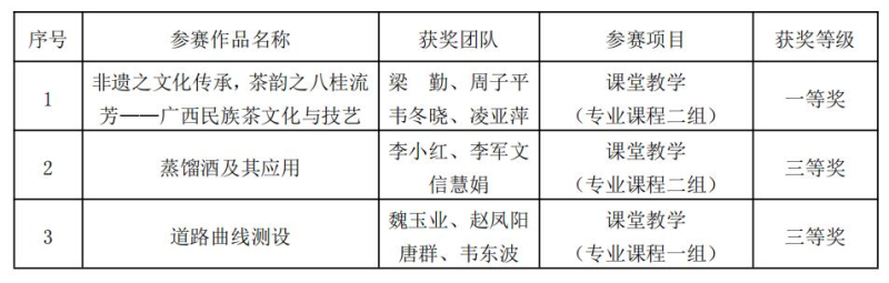 太阳集团2138在2021年广西职业院校教师教学技能大赛课堂教学比赛中获奖一览表