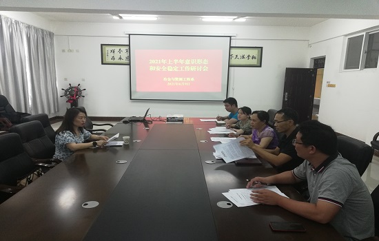在会上,该系党总支书记石有总首先向肖彩霞副校长、班子其他成员通报了近期推进党史学习教育、常态化开展师生安全教育、阵地建设与管理、意识形态专项检查排查、化解各类矛盾和风险等方面的工作开展情况,随后剖析了近期意识形态形势,指出了可能存在的毕业季意识形态和安全稳定风险点,并提出了有针对性的工作举措。随后,班子成员就做好师生安全教育、特殊学生重点关注和引导、毕业季毕业生离校就业、网络舆情监测与管控、加强阵地建设、学生各类矛盾问题妥善解决等方面进行了研讨,并明确了具体工作任务。
