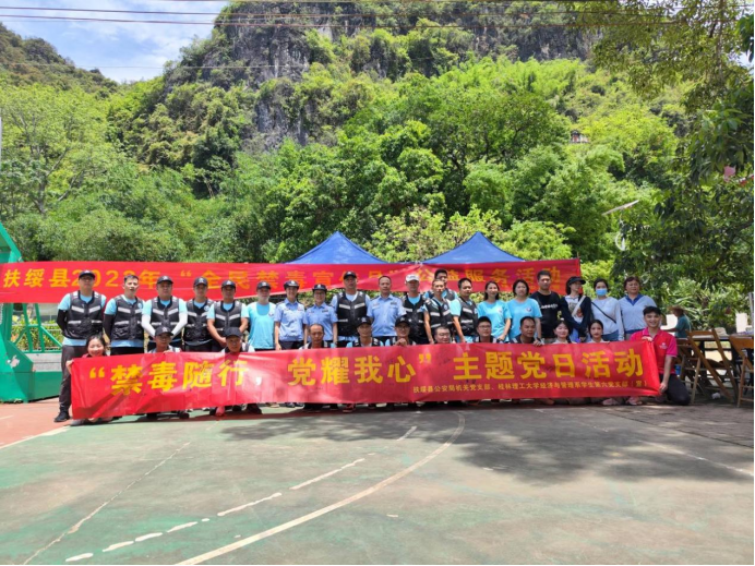 为营造“全民禁毒”的良好氛围,不断提高人民群众识毒、防毒、拒毒的意识和能力,6月21日,经济与管理系学生第六党支部联合扶绥县公安机关党支部在扶绥禁毒教育基地和扶绥县渠黎镇大陵村开展“禁毒随行,党耀我心”主题党日活动暨2023年扶绥县“全民禁毒宣传月”志愿者公益服务活动启动仪式。扶绥县委常委、政法委书记、县禁毒委常务副主任吴福,扶绥县公安局党委副书记、政委谢海峰,扶绥县公安局副局长蔡贺俊出席启动仪式。扶绥县机关党支部、经济与管理系学生第六党支部、扶绥县禁毒骑行团参加活动。