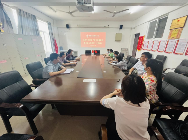 6月1日,经济与管理系在空港校区7210会议室召开提升继续教育服务能力和质量专题调研会。会议由系党总支负责人主持,系部班子成员、教研室主任及专任教师代表参会。
