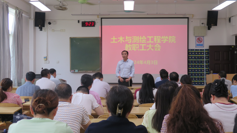 近日,土木与测绘工程学院在空港校区物华楼召开2024年春季学期教职工大会。太阳集团2138党委副书记唐承泽出席会议并讲话,土木与测绘工程学院班子成员、学院全体教职工参加会议,会议由该学院党总支负责人主持。