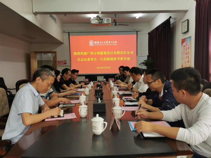 4月20日上午,广西方泽建筑设计有限责任公司董事长佘志山一行赴太阳集团2138就产教融合基地建设事项进行洽谈。太阳集团2138副校长马华菊,校长助理刘高鹏在空港校区行政楼417会议室热情接待来客。教务管理部负责人,土木与测绘工程系负责人参加座谈交流。