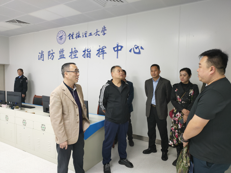 梁冬松副书记一行实地参观了学校雁山校区安全教育基地、消防监控指挥中心、老兵之家和国防教育协会等场所,认真听取了校园智慧安防信息化平台建设、安全教育基地建设工作情况介绍和经验分享,并针对建设中的技术需求和重点难点进行深入交流。