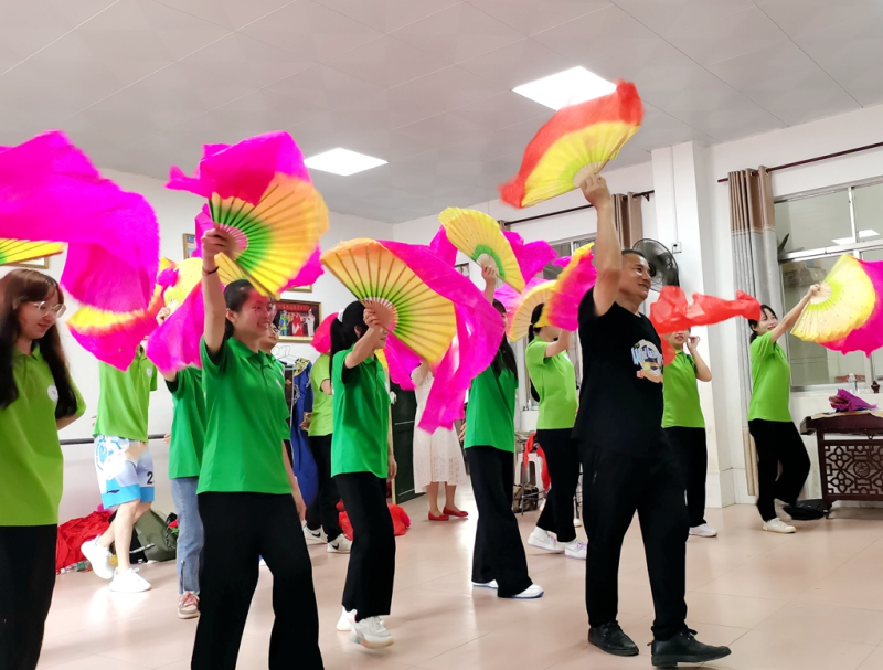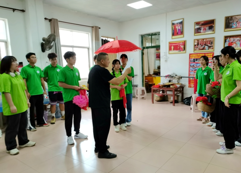 实践团深入山圩镇文化站,与文化站站长-扶绥“壮乡采茶戏“传承人姚文老师进行座谈,了解”壮乡采茶戏“的传承传播情况,并在姚文老师的指导下,学习体验表演采茶戏。
