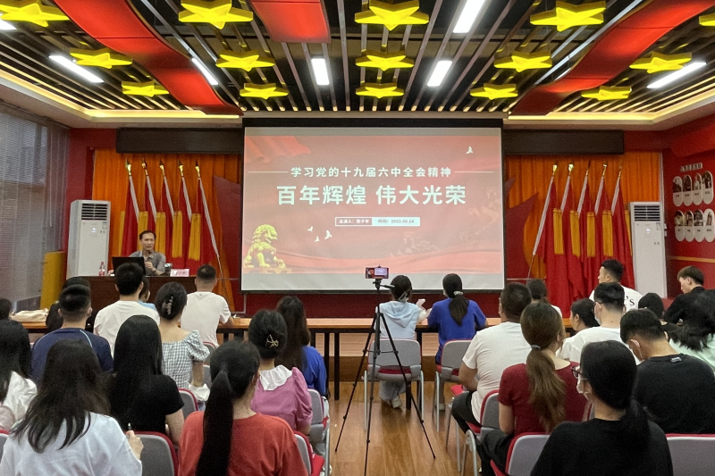 为深入开展党史学习教育,进一步贯彻落实党的十九届六中全会精神,6月14日晚,经济与管理系主任周子平在党员教育活动中心为该系毕业生党员讲授专题党课。