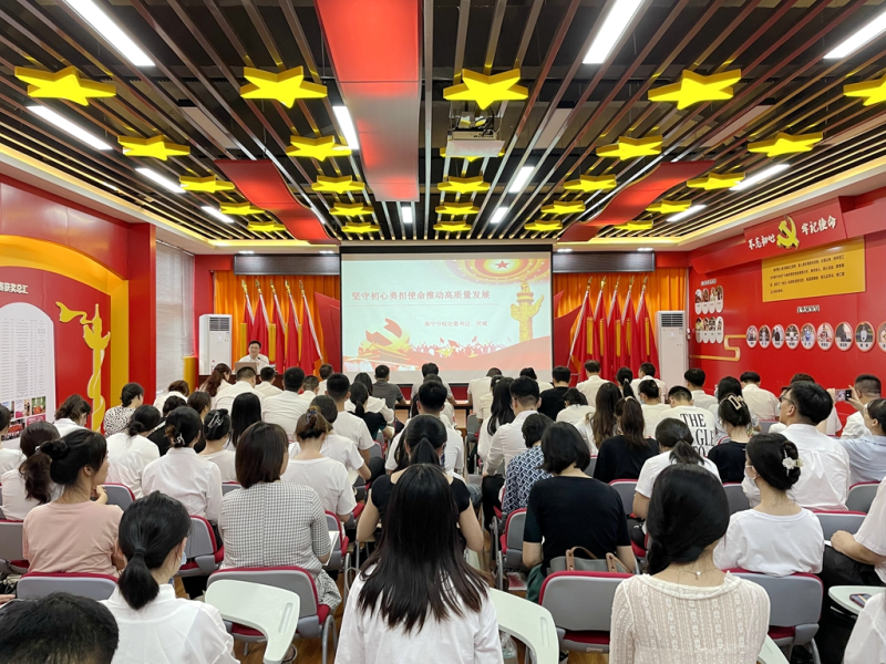 何斌书记分别从“党员干部要勇挑责任”“什么是一个共产党员的担当”“如何勇挑责任、敢于担当”三个方面向参会党员同志讲解了“坚守初心、勇担使命,推动高质量发展”的真正含义。他指出,勇于责任担当要有矢志不渝的政治情怀,要有攻坚克难的无畏气魄,要有为人民服务之心,党员干部要敢于较真碰硬、勇于责任担当、尽心竭力、善作善成,才能实现伟大梦想。