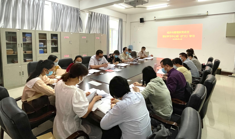 5月12日下午,经济与管理系在7210会议室召开党总支理论学习中心组(扩大)学习会。经济与管理系领导班子、党总支委员、各支部书记、教研室主任参加会议。会议由经济与管理系党总支书记张凯主持。