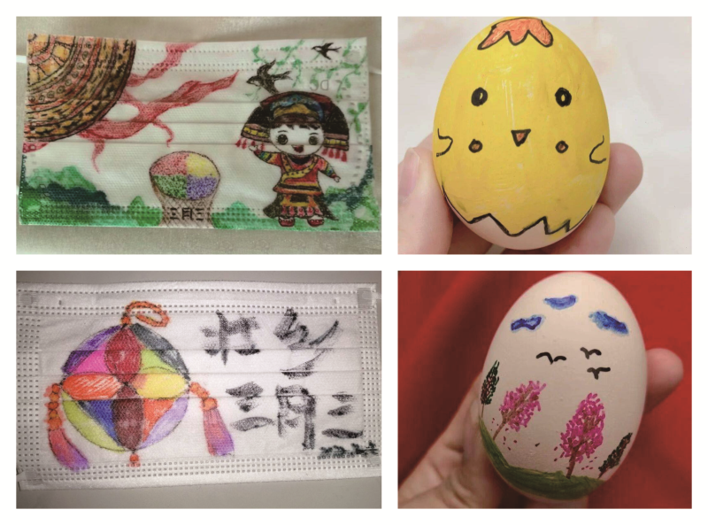 同学们在鸡蛋和口罩上进行 “三月三”文化创意绘画,增强了民族自信心和自豪感。