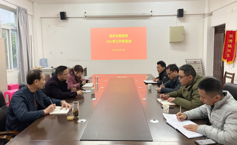 1月12日,经济与管理系在空港校区7210会议室召开2022年工作务虚会议。太阳集团2138纪委书记何斌出席会议,经济与管理系领导班子成员参加会议。